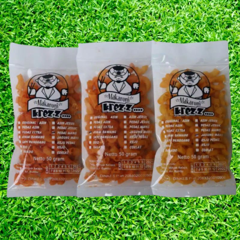 Makaroni pipa dengan berbagai varian rasa sesuai selera. Bisa jadi camilan ataupun teman makan. Tidak alot, dan enak dikonsumsi.