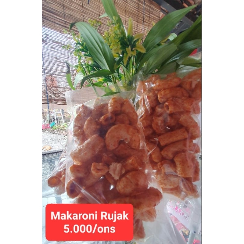 Camilan berbahan dasar Makaroni dengan dilengkapi bumbu rujak dengan rasa manis pedas..