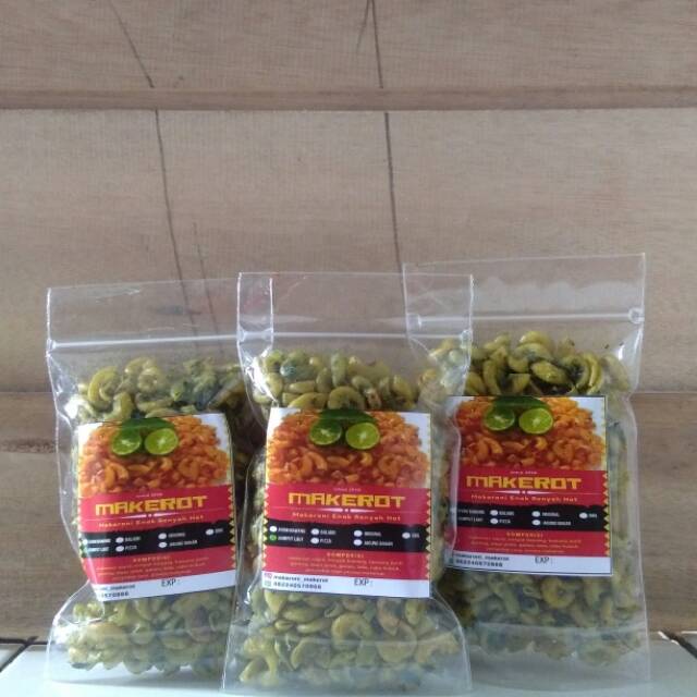 Makaroni pedas rasa rumput laut dengan sensasi rasa gurih pedas manis dengan aroma daun jeruk dan toping keripik bawang