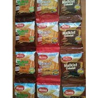 Malkis gramasi 15gram yang diproduksi oleh Roma dengan sertifikasi BPOM RI Dan Halal Majelis Ulama Indonesia dengan varian rasa:Coklat,Keju manis,Coklat tabur kelapa,Abon,Crackers