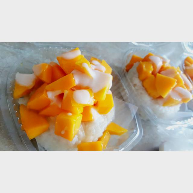 Makanan khas Thailand yang terdiri dari ketan gurih, buah mangga manis, dan saus creamy di atasnya langsung pesan untuk tau rasanya