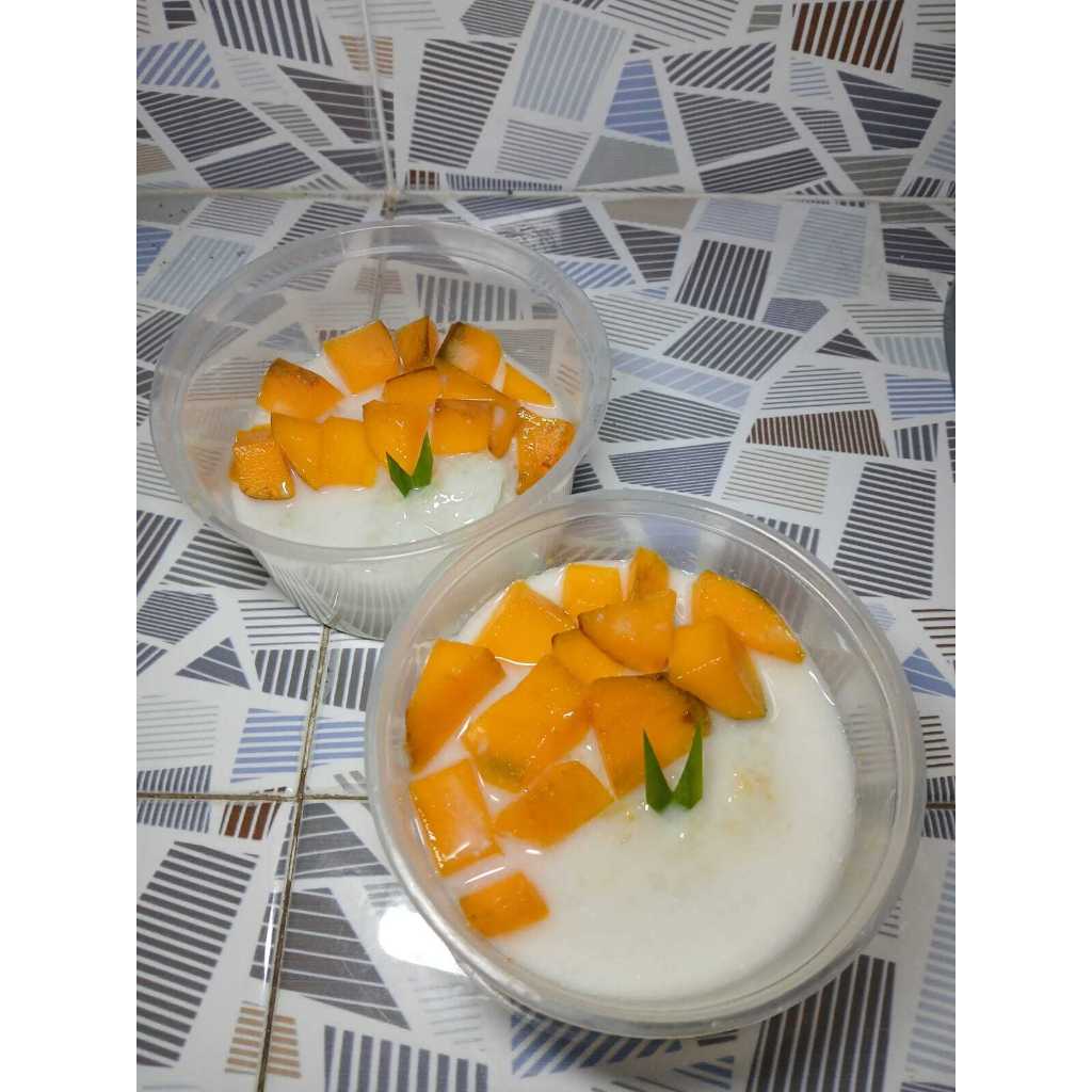 Ketan yang lembut serta gurih manis berpadu dengan potongan buah mangga harum manis yang lembut dan matang sempurna.
