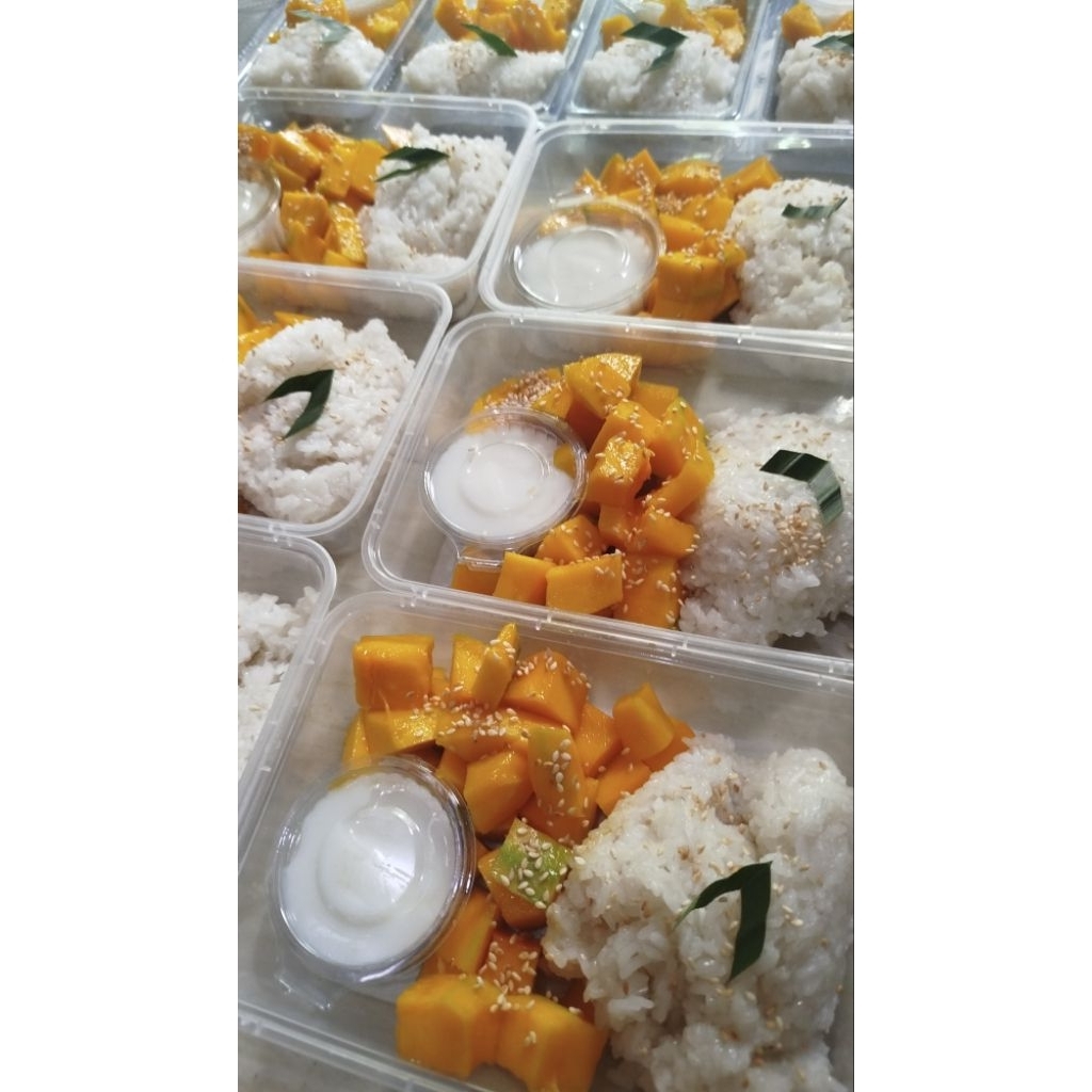 mango sticky rice dengan ketan legit + mangga harum manis dilengkapi vla manis gurih cocok sbg teman ngemil anda