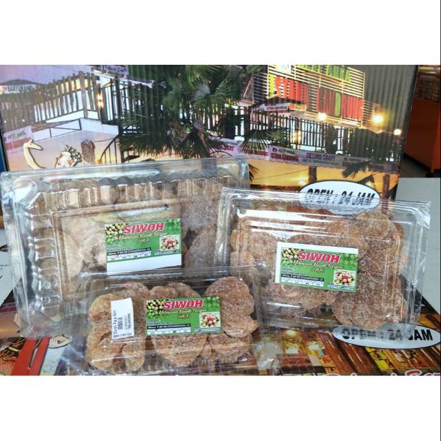 Manisan pala terbuat dari buah pala segar yang diolah menjadi manisan pala kering dengan taburan gula,.