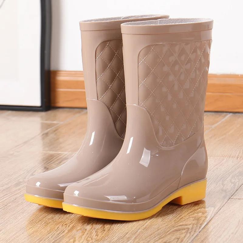 Maogu Женские Взрослые Рабочие Высокие Трубы Водные Ботинки Противоскользящие Осенние Ботинки Однотонные Водонепроницаемые Клетчатые Резиновые Сапоги 2024 Снежные Дождевые Сапоги 36