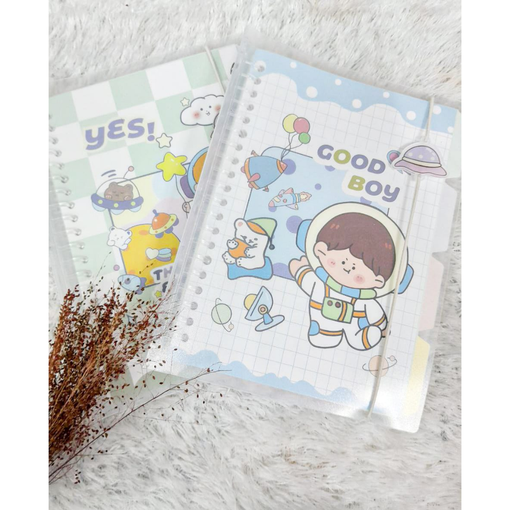 Binder wengu minimalis dengan cover plastik PP tebal transparant, dengan motif Ruang Angkasa dengan pemanis Tali + acrylic tema luar angkasa