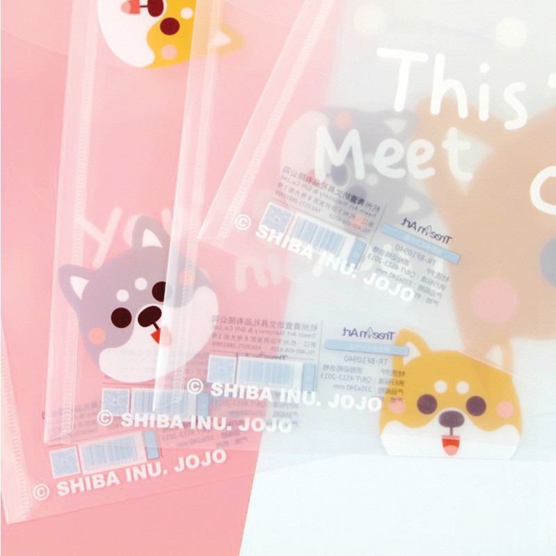 Seri Jojo Shiba Inu yaitu file folder berukuran A4 transparan yang memiliki gambar karakter seekor anjing berwarna coklat dan abu-abu yang chubby dan menggemaskan. Digunakan untuk menyimpan file kamu agar tidak tercecer.