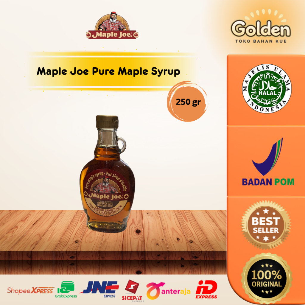 Maple Joe Pure Maple Syrup adalah sirup murni yang dihasilkan dari getah pohon maple (Acer saccharum), yang berasal dari Kanada. Produk ini termasuk 100% sirup maple asli, tanpa campuran gula tambahan, perasa buatan, atau bahan pengawet.