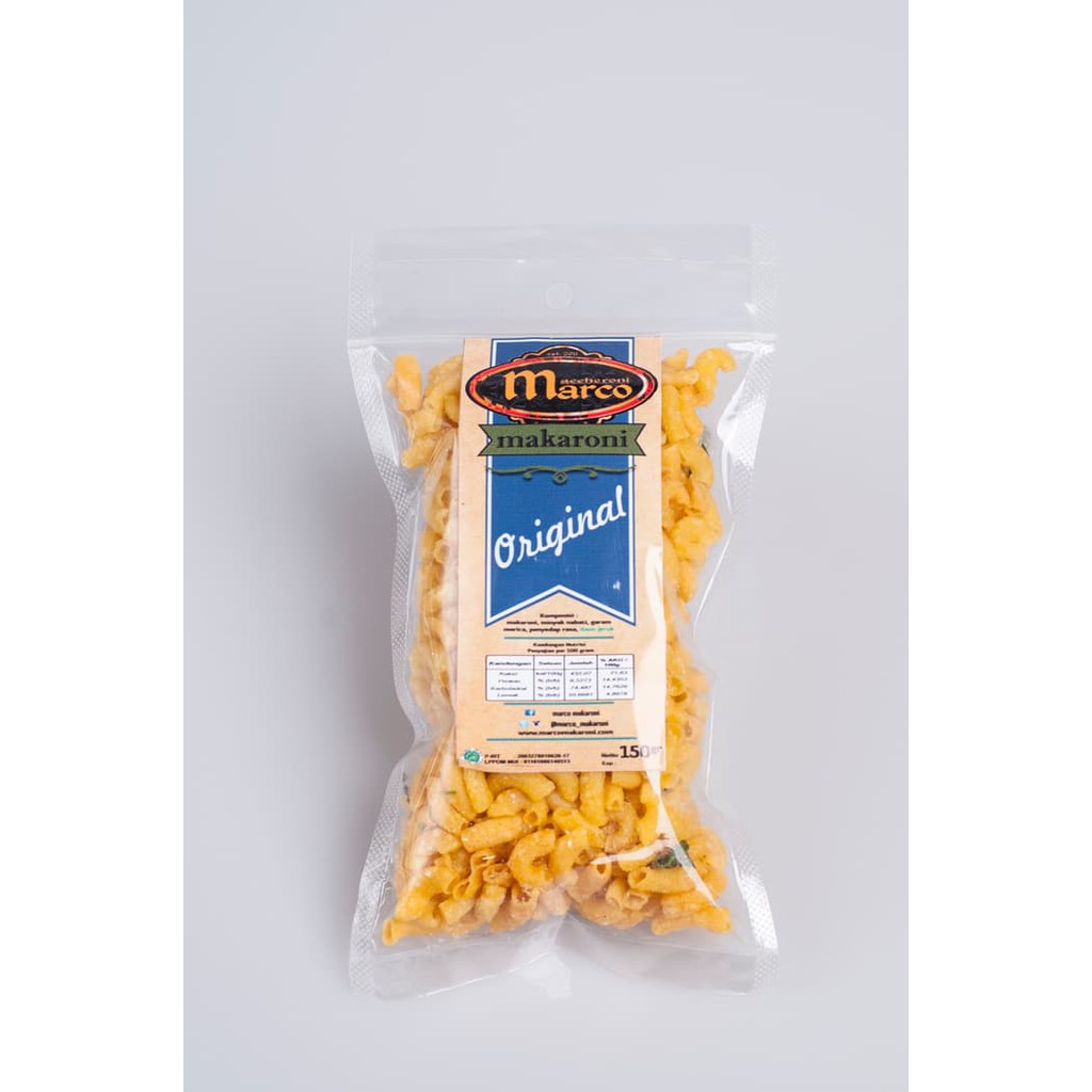 Marco Makaroni Cemilan makaroni ini berbentuk seperti pipa. Makaroni ini digoreng menggunakan paduan daun jeruk sebagai bumbunya