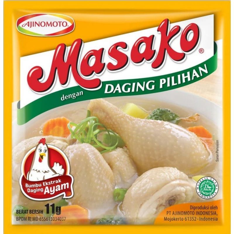 Masako, Bumbu Kaldu Penyedap dibuat dengan perpaduan sempurna antara daging segar berkualitas, bumbu dan rempah pilihan. Sehingga secara praktis menyempurnakan kelezatan masakan Anda sehari-hari dengan rasa dan aroma dari daging asli sama seperti kaldu buatan di rumah.