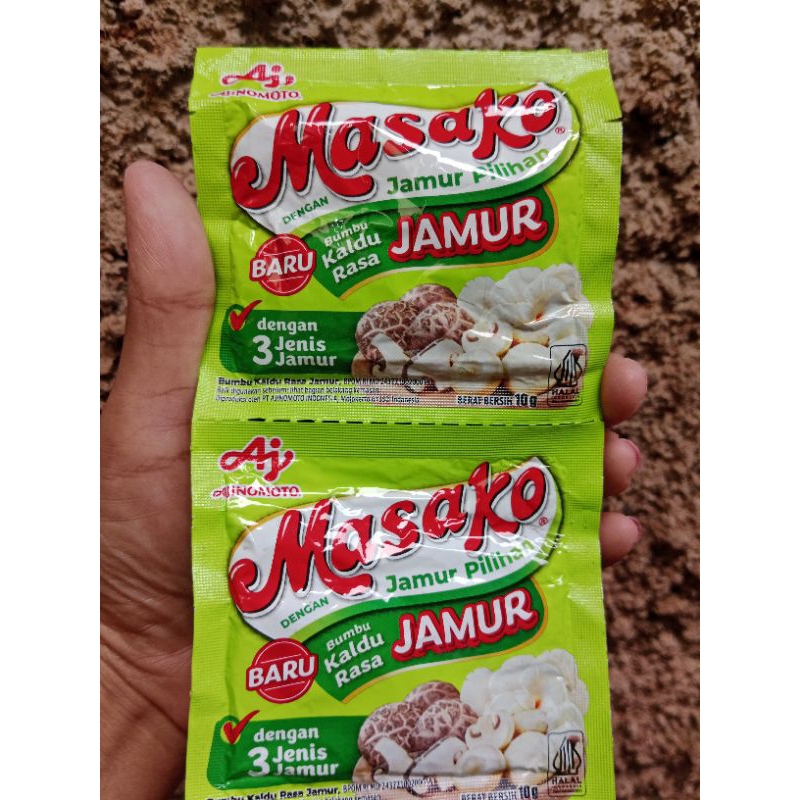 Masako Bumbu Kaldu Rasa Jamur dibuat dengan 3 jenis jamur pilihan yaitu : jamur shitake, jamur kancing dan jamur tiram yang menghasilkan rasa dan aroma kaldu jamur lezat serta rasa gurih yang pas.