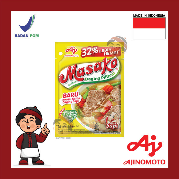 Masako Sapi adalah Bumbu Kaldu Penyedap yang dibuat dengan perpaduan sempurna antara daging segar berkualitas, bumbu, dan rempah pilihan sehingga secara praktis dapat menyempurnakan kelezatan masakan dengan rasa dan aroma dari daging asli seperti kaldu buatan sendiri.