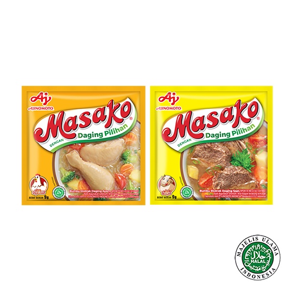 Masako Kaldu Bubuk Renceng Ayam dan Sapi Renceng 12 sachet x 9 gram /Masako Penyedap Renteng