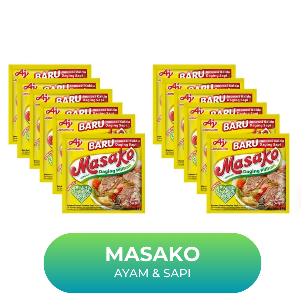 Masako Rasa Ayam 8,5g (12 pcs) adalah bumbu kaldu spesial yang dibuat dengan daging asli pilihan, dengan ekstrak daging lebih mantap dan rasa asin, gurih, dan bumbu yang lebih seimbang. Diolah dengan teknologi tinggi dan higienis hingga menghasilkan bumbu kaldu yang berkualitas untuk kaldu buatan di rumah.