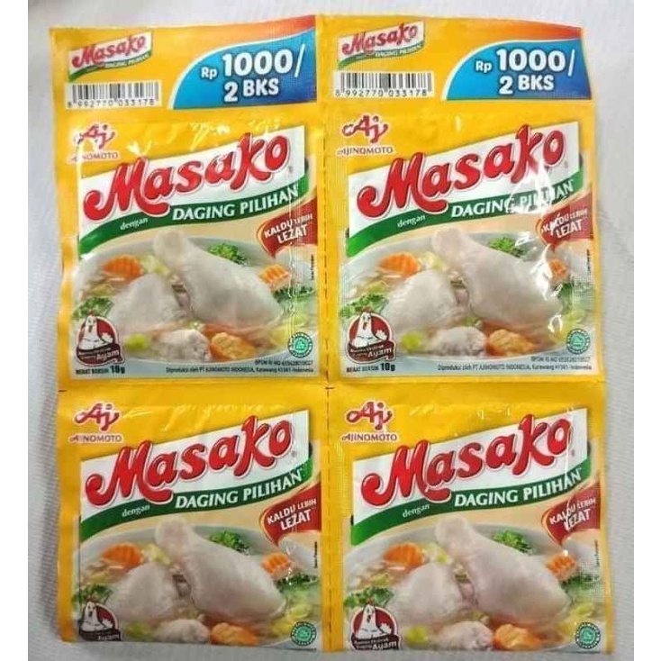 Masako Bumbu Penyedap Rasa Kaldu Ayam & Sapi merupakan bumbu ekstrak daging ayam dan sapi yang dibuat dengan perpaduan tepat antara daging segar berkualitas, bumbu, dan rempah pilihan. Dapat memberikan rasa dan aroma masakan dari daging asli sama seperti kaldu buatan sendiri.