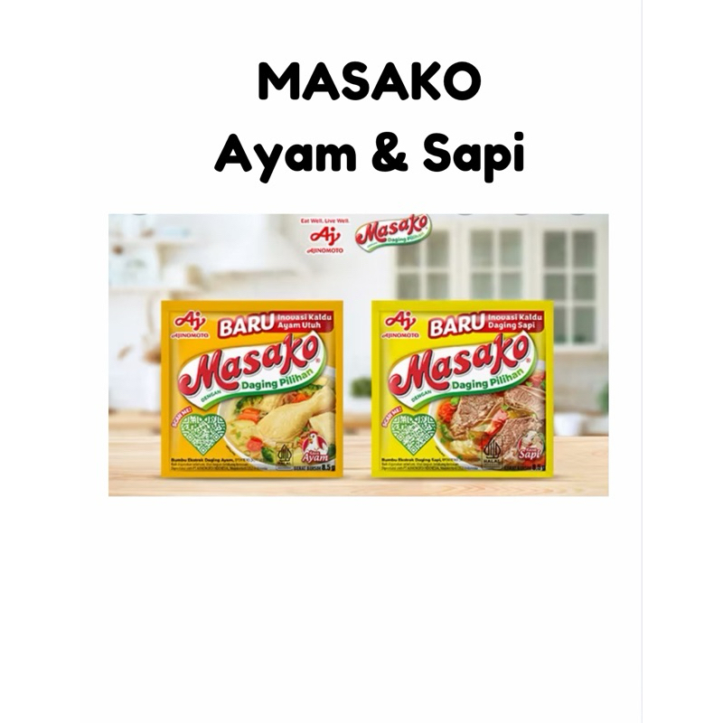 Masako dengan 3 varian rasa: Ayam, Sapi, dan Jamur