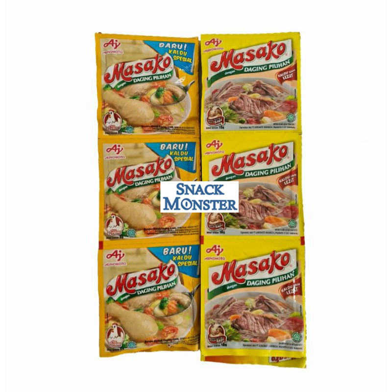 - Masako renceng tersedia dalam varian rasa ayam dan sapi