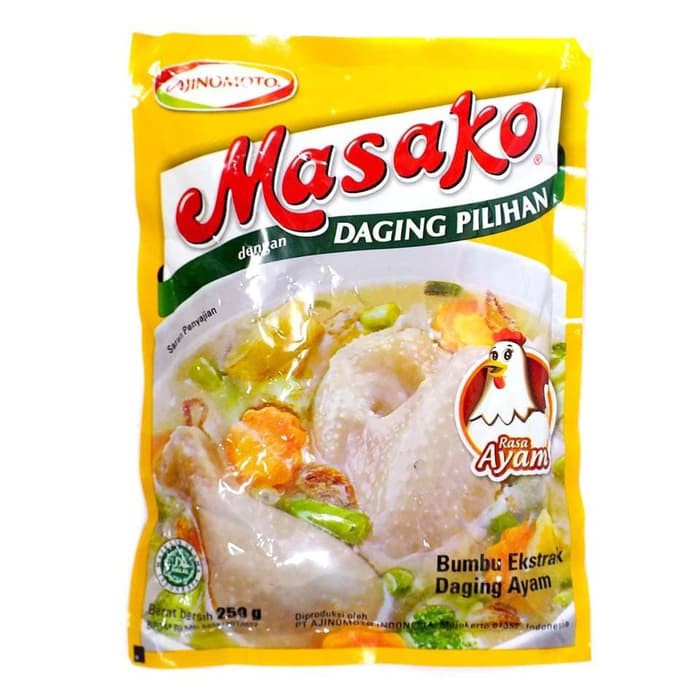 garam,gula,penguat rasda,perisa sintentik,ekstra daging ayam(1,1%),lemak ayam,protein kedelai terhidrolisa ,bawang bombay,bawang putih,pengental gom xantahn,perisa alami seledri,bawang merah,kunyit.