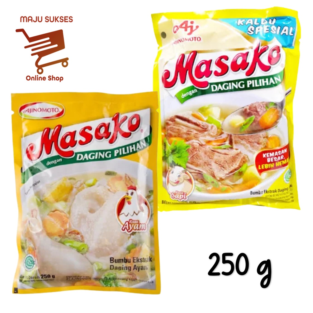 Masako Penyedap Rasa (Ayam/Sapi) merupakan bumbu kaldu penyedap masakan yang menjadikan rasa masakan lebih istimewa Masako Penyedap Rasa terbuat dari paduan daging segar berkualitas bumbu dan rempah pilihan dengan komposisi yang tepat serta diproduksi di pabrik sendiri sehingga membuat kualitas rasa dan masakan yang dihasilkan terjamin.