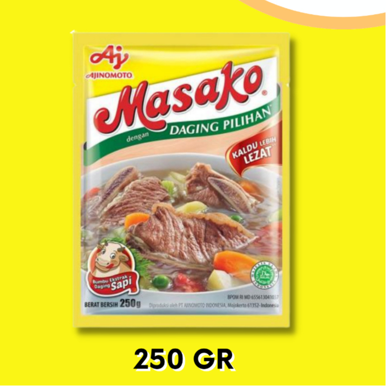 Masako merupakan bumbu kaldu penyedap yang dibuat dari kombinasi antara daging segar berkualitas, bumbu dan rempah-rempah pilihan.