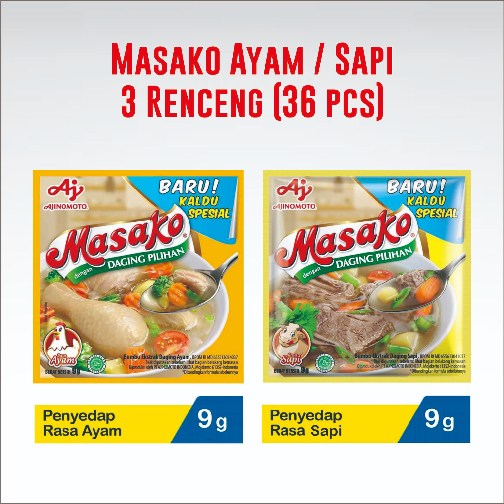 Masako Sapi / Ayam 9 gram, 3 Renceng (36 pcs)