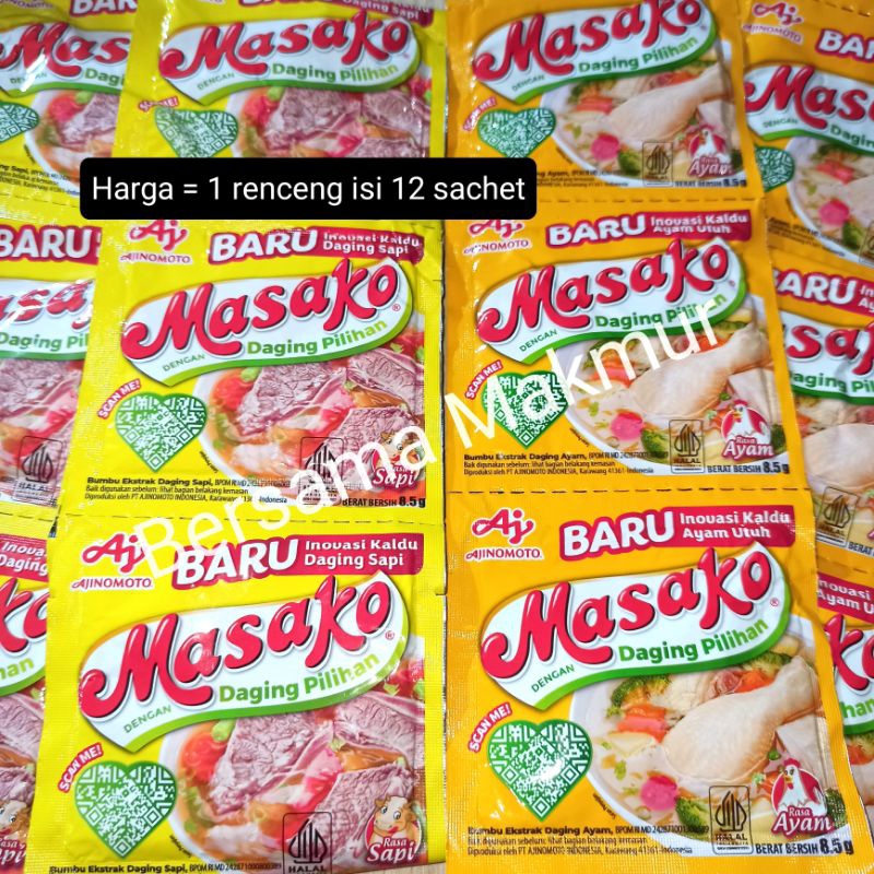 Masako ayam atau Masako sapi penyedap rasa terbuat dari kaldu daging pilihan @ 8.5 gram.