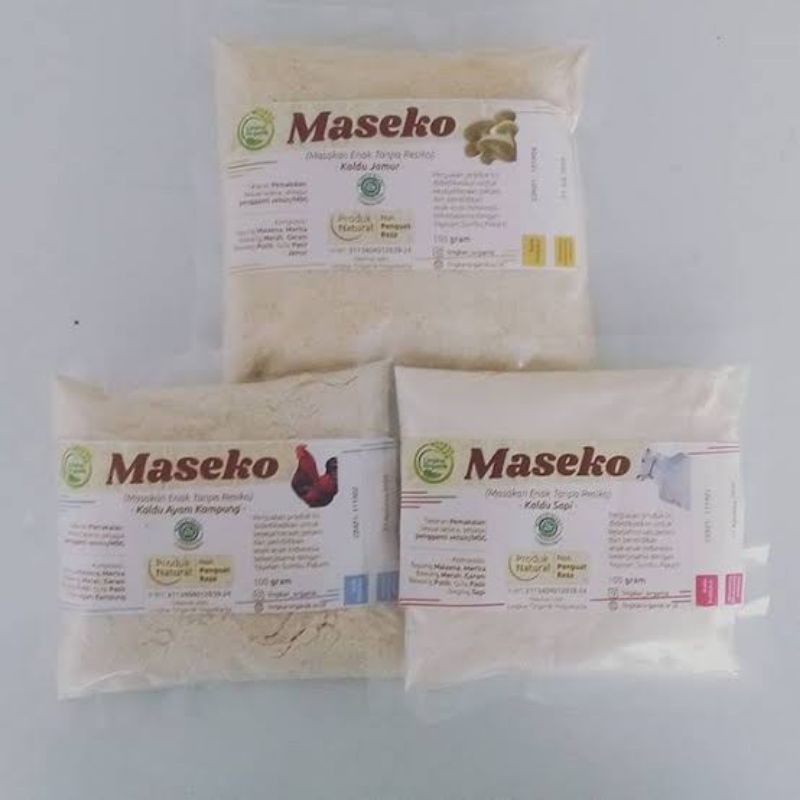 Maseko (Masakan Enak Bebas Resiko) dibuat dari bahan-bahan alami, bebas MSG (sudah dilakukan pengijian laboratorium). Digunakan sebagai pengganti vetsin/penyedap rasa, dengan takaran sesuai selera. Maseko hadir dengan 3 Jenis; Maseko ayam, maseko sapi dan maseko jamur.