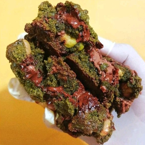 Matcha dough, dark chocolate, walnut.