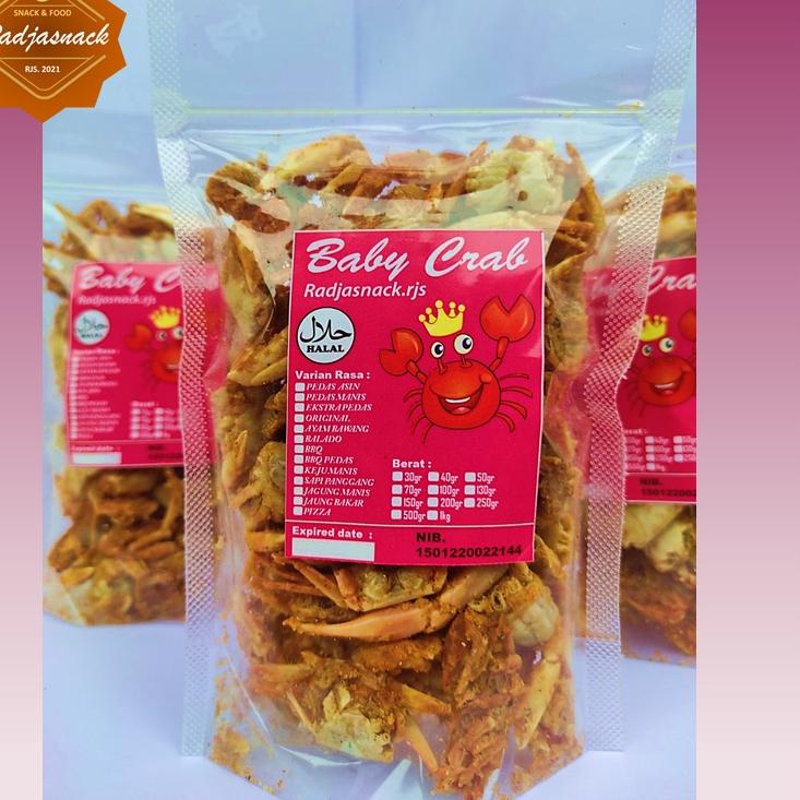 Baby Crab asli dari RADJASNACK.RJS dengan bumbu dan rempah pilihan menjadikan rasa semakin enak, gurih, dan crispy