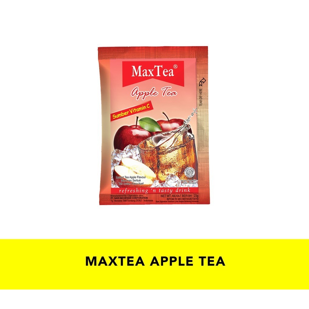 MaxTea Apple Tea adalah perpaduan rasa teh dan apel dengan rasa manis yang pas, memberikan kesegaran bila dikonsumsi dingin, atau dikonsumsi hangat akan memberikan rasa nikmat yang nyaman.