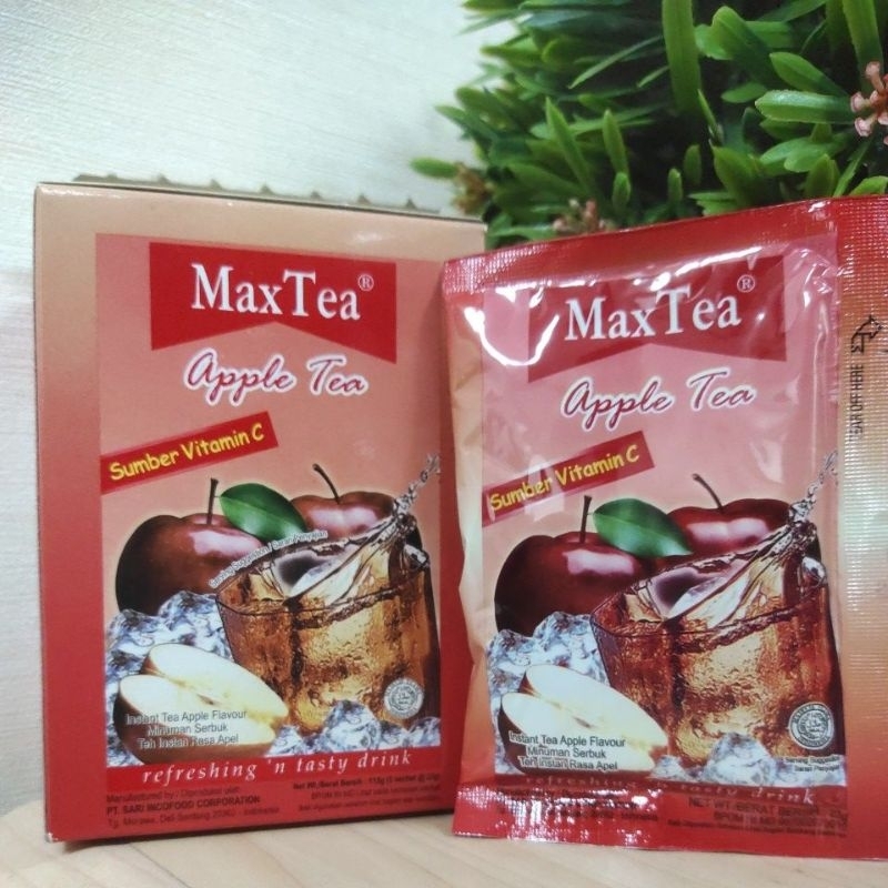 Maxtea Apple Tea merupakan minuman yang dikemas dalam sachet berbentuk serbuk dengan takaran gula yang pas, dapat dikonsumsi dingin dan panas, rasa yang segar dari buah apel asli dapat mebuat tubuh sehat