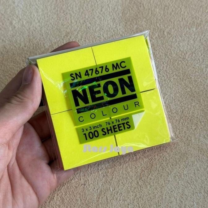 sticky note neon colour vtec spesifikasi : - terdapat 100 sheets dalam 1 kemasan - 3.3 inch ( 76.76mm) - warna sticky note campur - harga yang tertera adalah harga perpcs ( persatuan ) sticky note adalah sebuah kertas kecil yang dilengkapi dengan lem perekat yang biasa direkatkan kembali ke bagian belakangnya, sehingga dapat ditempelkan sementara ke suatu dokumen atau buku pelajaran. keunggulan sticky note : - biasa digunakan sebagai catatan tambahan - praktis, mudah dibawa kemana mana - mudah dan nyaman digunakan - reposisi yang dapat dilepas dengan mudah