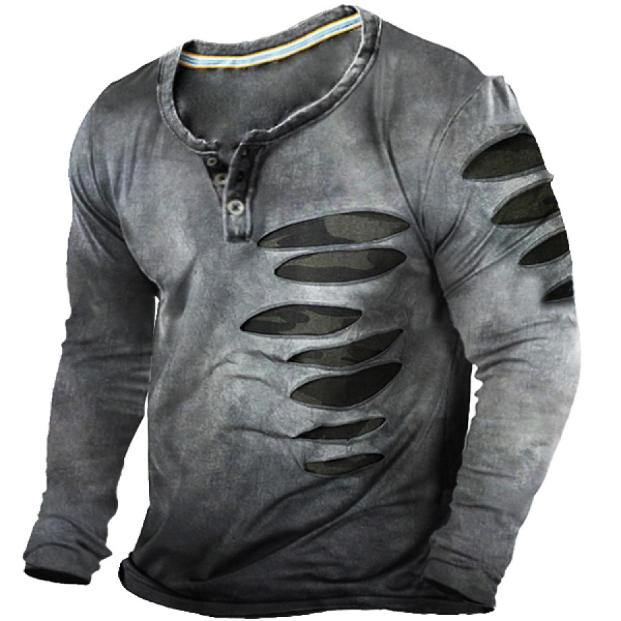 Men' Ripped Henley Long Sleeve Training Shirt