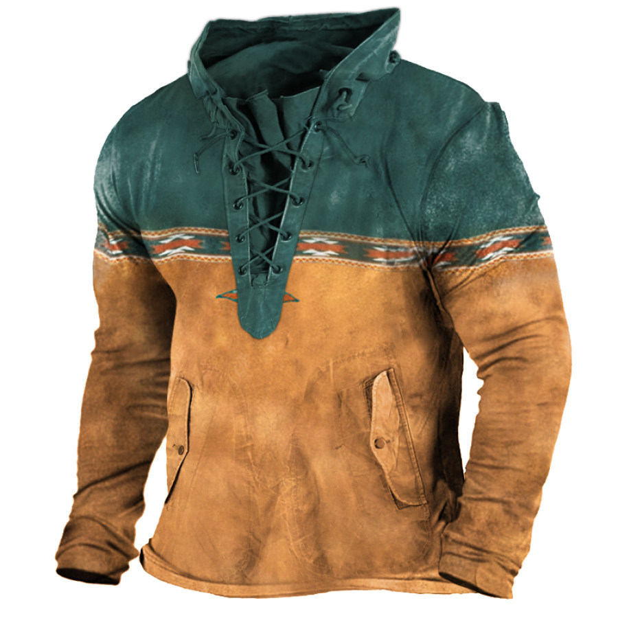 Men's Aztec Henley Drawstring Shirt