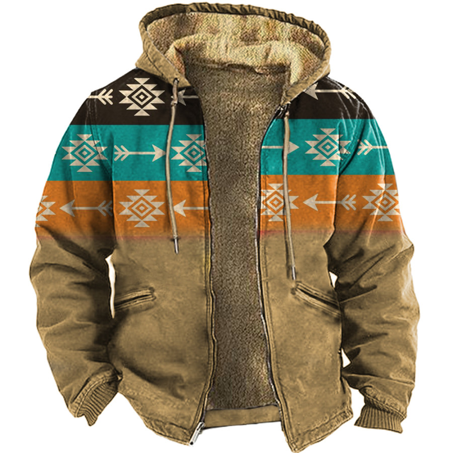 Men's Aztec Quarter Hoodie Color Contrast Winter Tactical Jacket