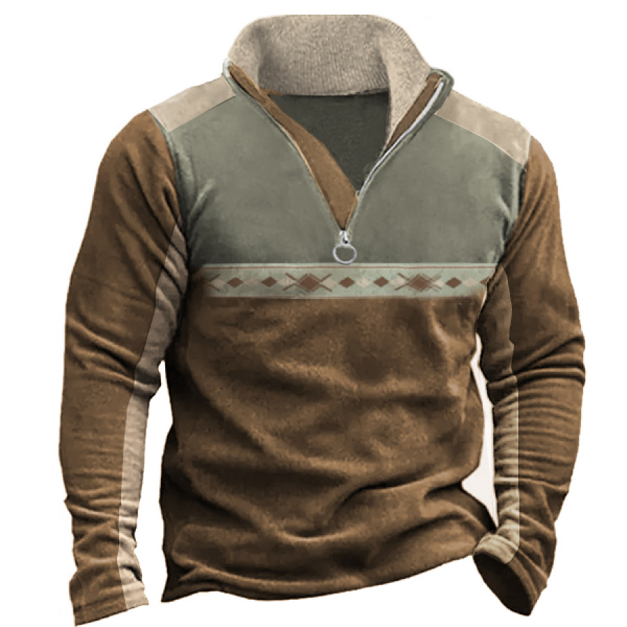 Men's Aztec Quarter Zip Color Contrast Fleece Sweatshirt