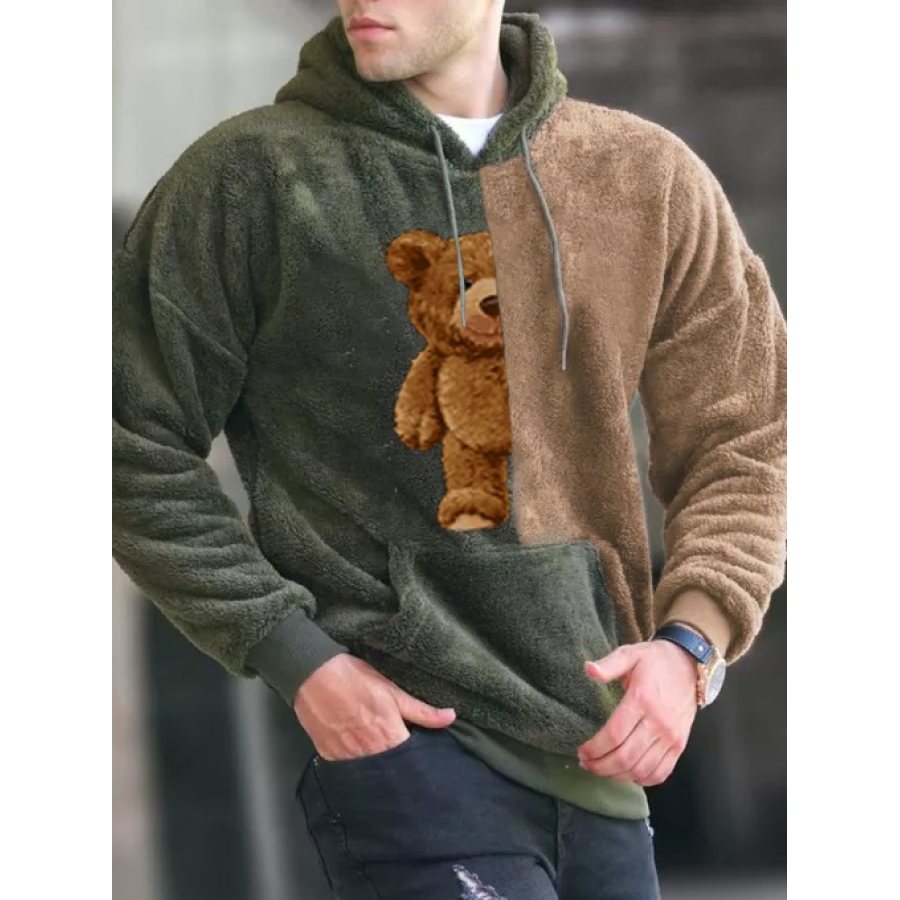 Men's Bear Pattern Splash Ink Stitching Teddy Velvet Hoodies
