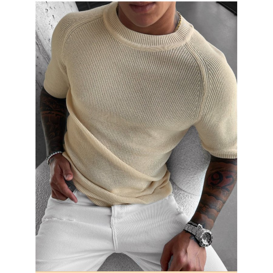 sweaters & cardigans,men's beige slim knit basic base layer t-shirt