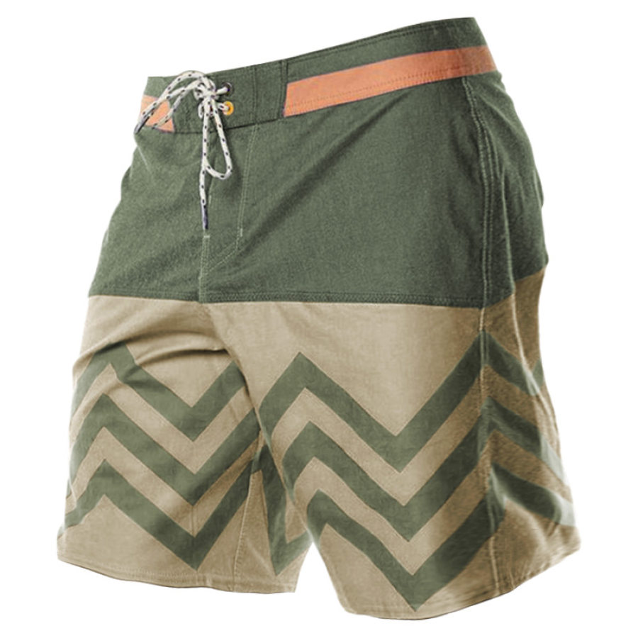 Men's Casual Color Contrast Stitching Beach Shorts