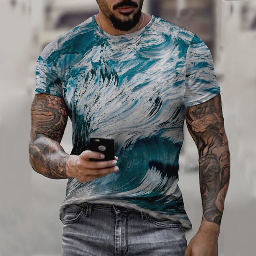 Men's Casual Vacation Wave Print Short Sleeve T-Shirt