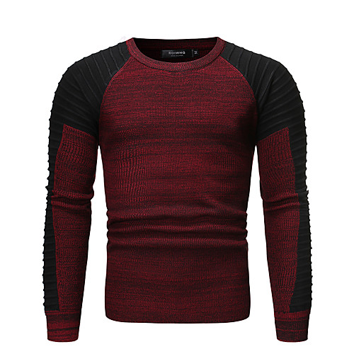 Men's Color Block Cardigan Long Sleeve Sweater Cardigans Round Fall Winter Red Dark Gray