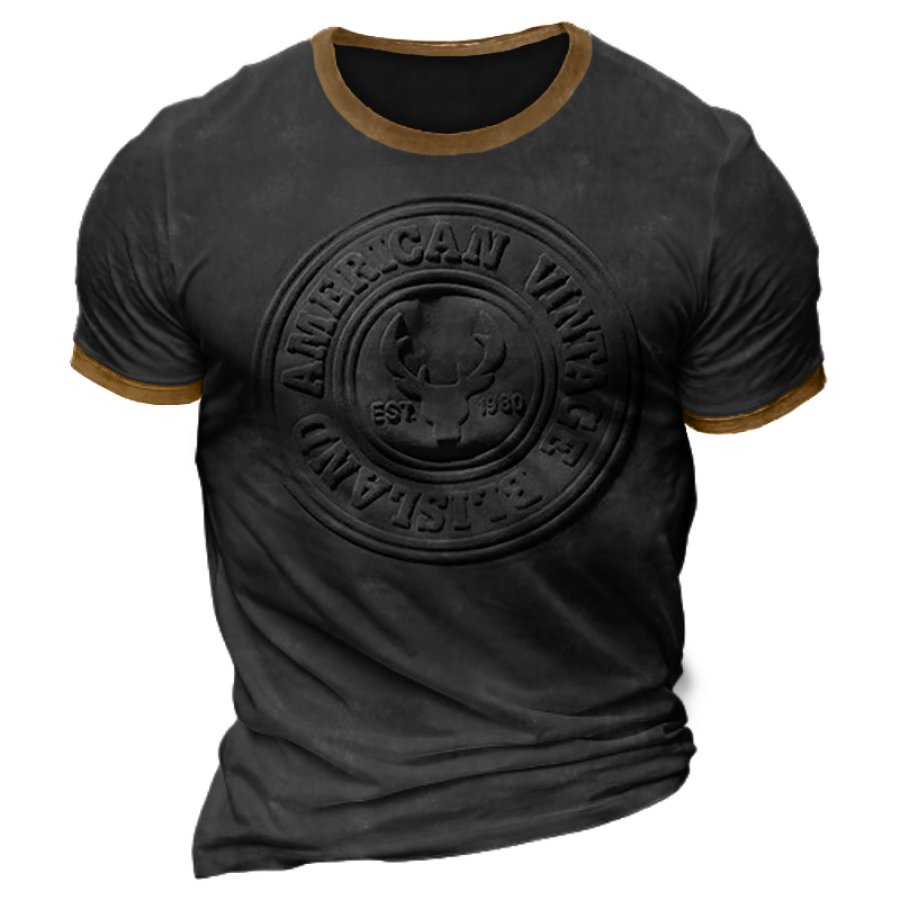 Men's Color Block Emboss Logo Print Crew T-Shirt