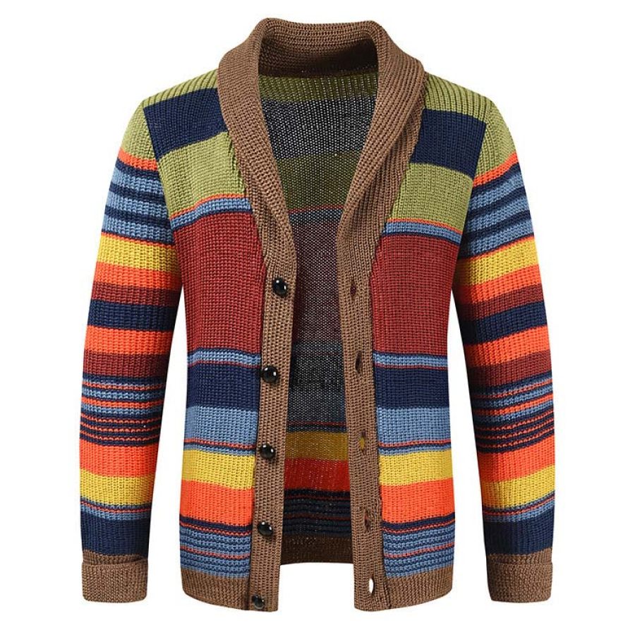 cardigan,men's color block lapel cardigan