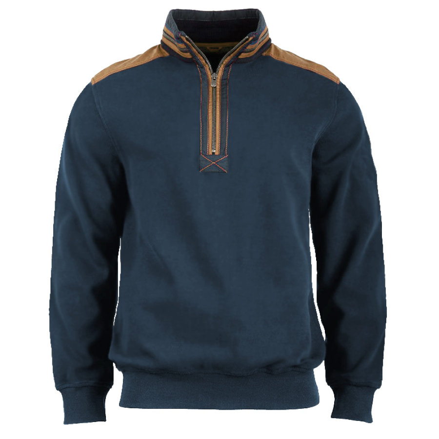 Men's Contrast Panel Tactical Stand Collar Sweatshirt
