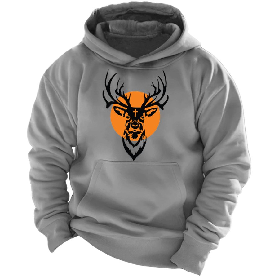 Men's Elk Hunt Retro Print Hoodie