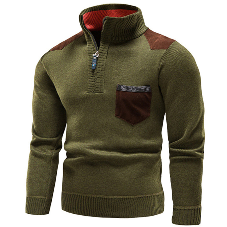 Men's Fleece Thick Zipper Half Turtleneck Sweater