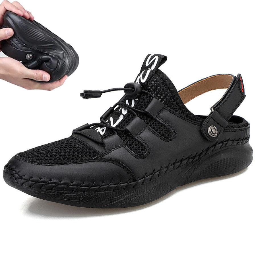 sandals,men's genuine leather two-wear toe mesh panel sports sandals