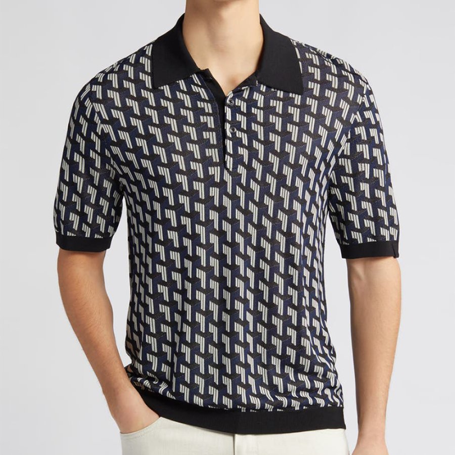 t-shirts,men's geometric print polo shirt