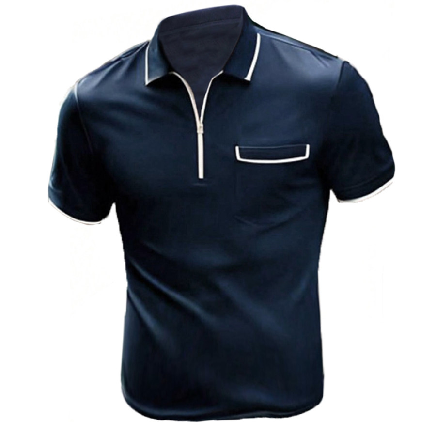 t-shirts,men's half zip polo shirts trim pocket contrast color