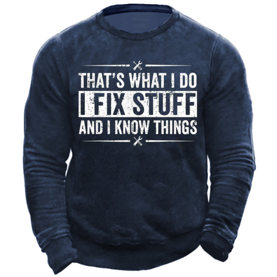 Men's I Fix Stuff I Know Things Simple Text Letters Sweatshirt